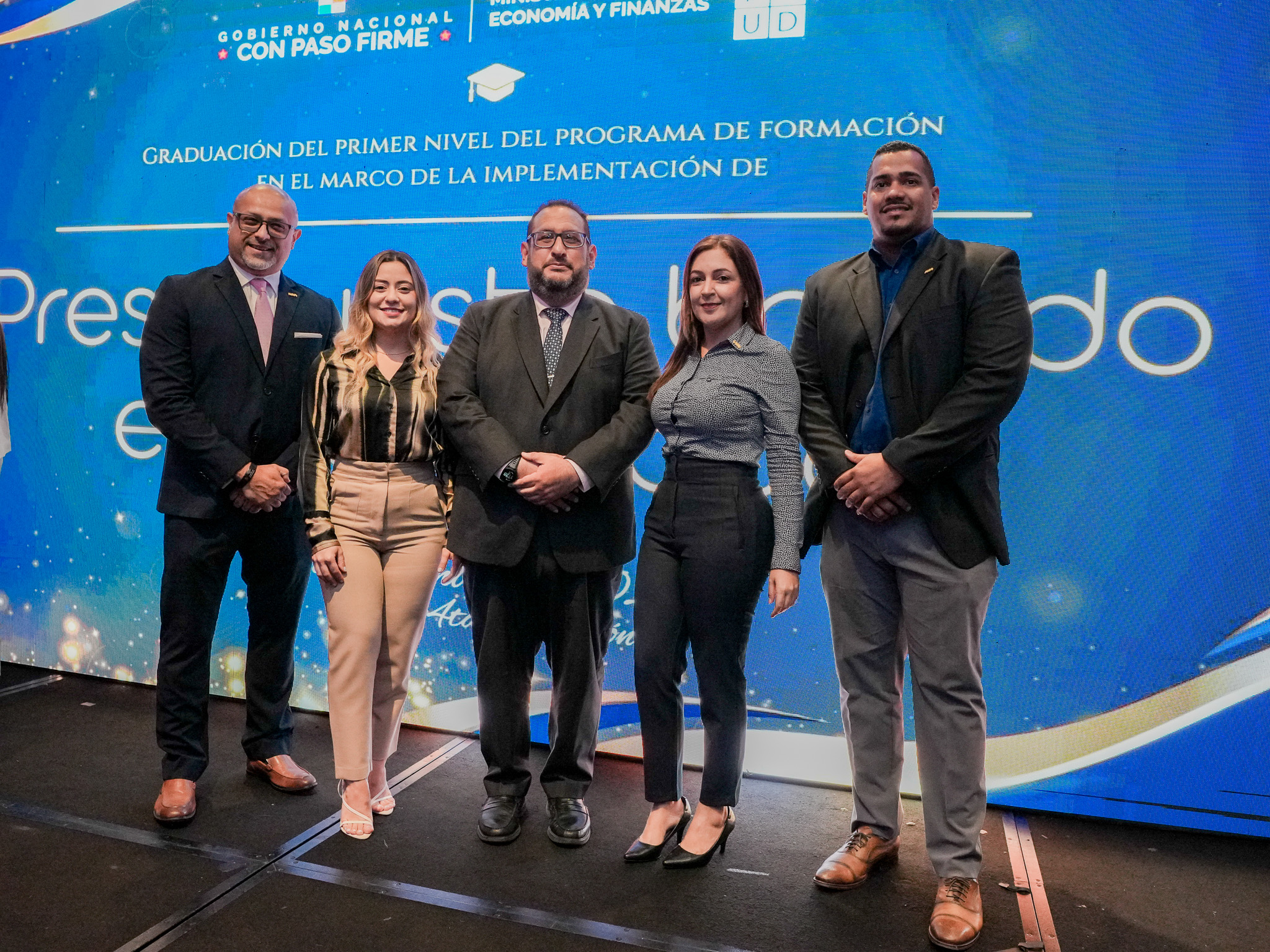 La delegación del Tribunal de Cuentas estuvo conformada por los cuatro (4) graduandos de esta entidad, quienes estuvieron acompañados por el Magistrado presidente, Rainier Del Rosario Franco. Los certificados de culminación de curso fueron recibidos por: Michelle Berástegui, Maylín Mendoza, Ivanor Gálvez y Zuriel Stephenson, de manos del director de Presupuesto de la Nación del MEF, Dr. Aurelio Mejía y de la representante del PNUD, Dra. Bettina Woll de Montenach.