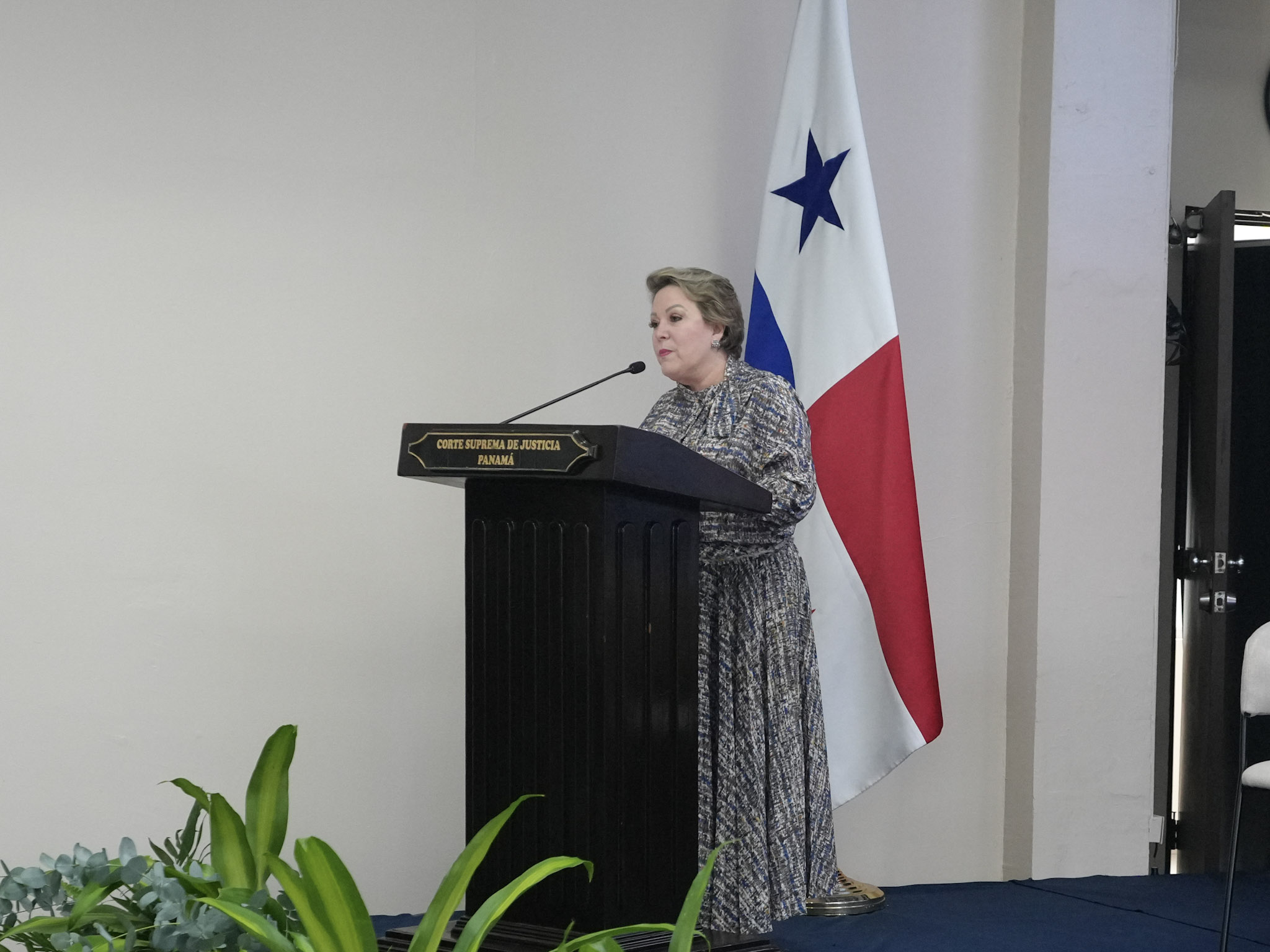 Luego del canto del himno nacional y de la invocación religiosa, la Magistrada López Arias presentó su informe institucional de rendición de cuentas, refiriéndose entre otros temas, a los avances de la implementación de la Ley de Carrera Judicial y Evaluación del Desempeño.