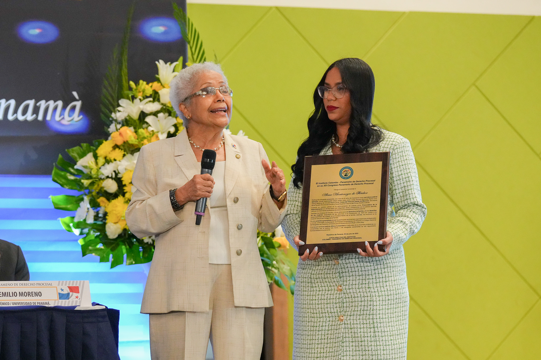 En el acto inaugural se rindió homenaje a la Licenciada Alma Montenegro de Fletcher, al Licenciado Simón Tejeira Quirós, y al Dr. José Angel Noriega (Homenaje Póstumo), reconocidos juristas nacionales.